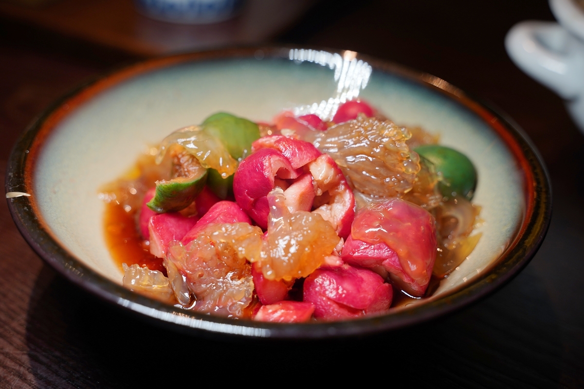 青梅春意海蜇花是一道很精緻的小菜,味道酸甜很開胃