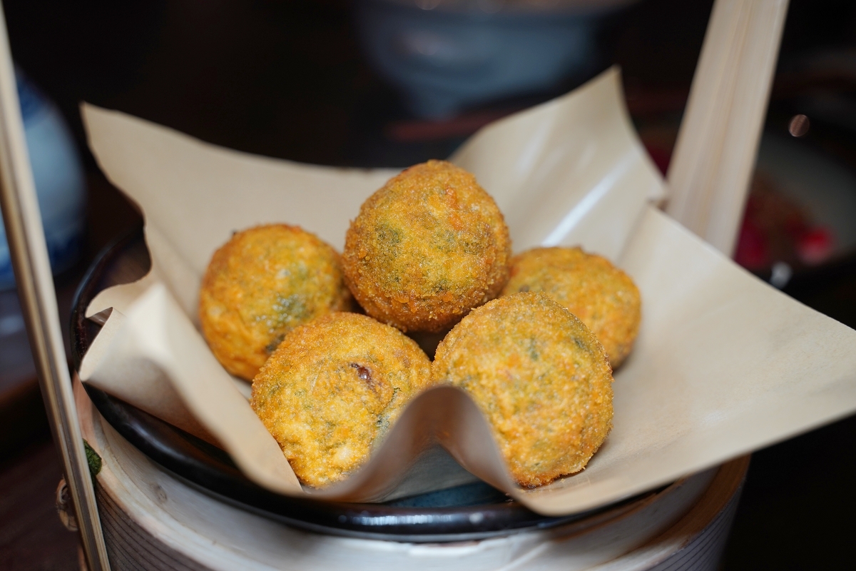 口咬春算是一道炸蔬菜球,主要會加入春天時的野菜當作內餡,像是有薺菜、馬蘭頭和馬蹄等,再加入豬肉和皮蛋,真的是一道南京在地特色菜餚