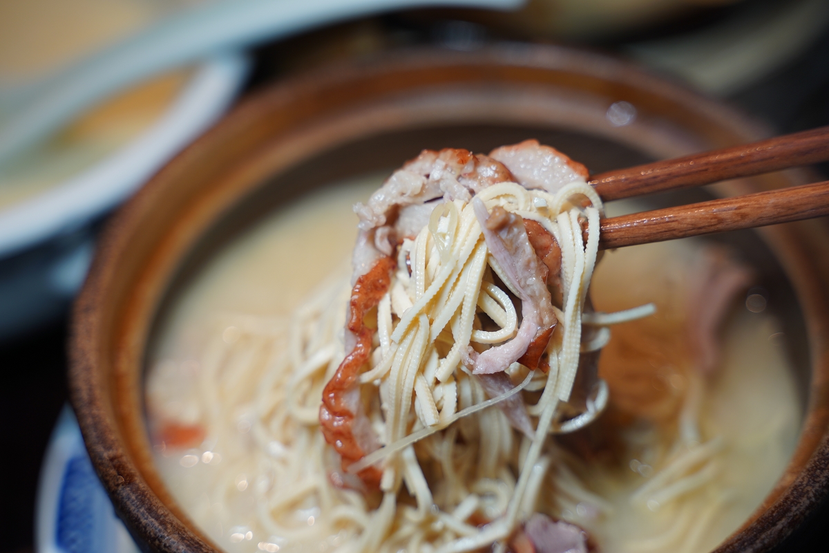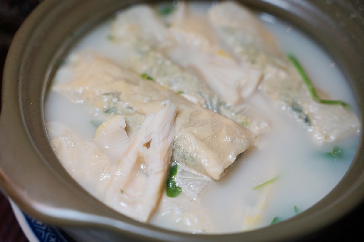 鍋裡吃得到用腐皮包著薺菜、春筍以及豬肉內餡,大口咬下滿口湯汁鮮甜,湯頭也很濃郁好喝