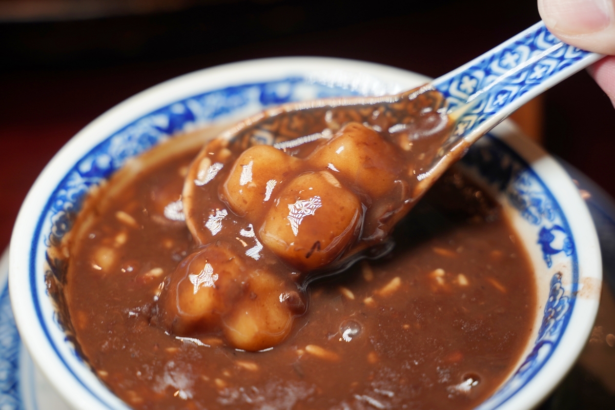 其實就是一般常吃到的紅豆麻糬甜湯,但會多了酒釀的獨特香氣和甜味,好吃