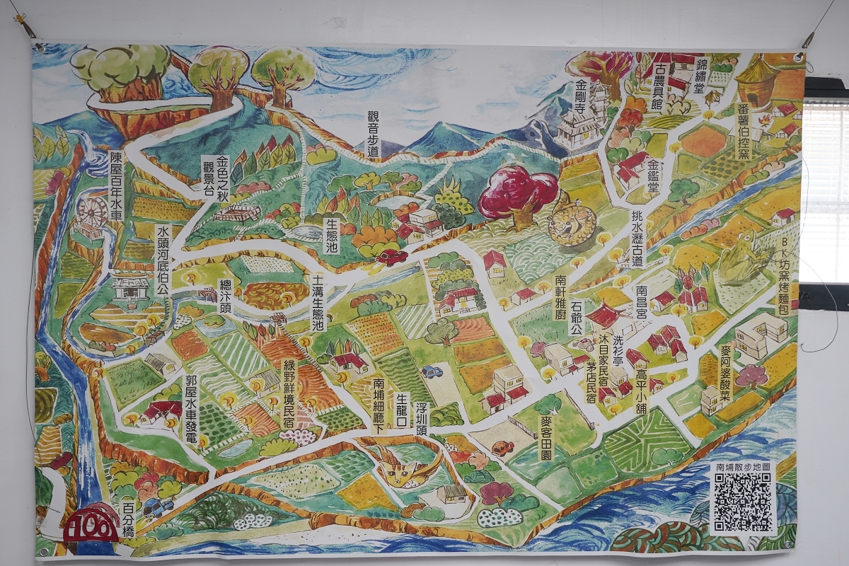 新竹縣北埔鄉有個「南埔社區」,他們除了是農村再生條例通過後第一個核定的農村再生計畫社區,更榮獲第一屆金牌農村競賽中「金牌農村」殊榮,南埔自百餘年水圳開通後,變成為稻米糧食的主要產地,素有「北埔穀倉」美稱,近年因南埔社區發展協會開始推動農村建設與產業發展,以淺山百年地景與人文為主題,提供各種五感體驗遊程,當天我們參加了「走讀南埔 水圳/生態/文化/產業巡禮」活動,費用每人150元起、20人~60人皆可報名,第一站我們來到南埔的南昌宮,認識到客庒山神信仰與開墾歷史,接下來我們跟著導覽老師「月桃花」到百年陳屋水車體驗灌溉水圳朔溪的清涼感,160多年歷史的灌溉水圳在南埔台地上綿延長達3公里,上游會經過21個大大小小以人工開鑿的隧道,我們穿著朔溪鞋走在水圳裡,路途中導覽老師還會仔細解說水圳內的獨特生態,最後我們來到「南埔細廳下」休息並品嘗在地飲品與點心,南埔細廳下是一棟以台灣國產材建成的綠能木屋,一旁的小水溝可以泡泡腳真的超舒壓的,各位朋友如果對新竹客家文化有興趣的話,真心推薦可以參與南埔社區發展協會的各種走讀活動,推薦可以關注「幸福南埔黃金水鄉」粉絲專頁,有新活動都會在上面公布唷!!