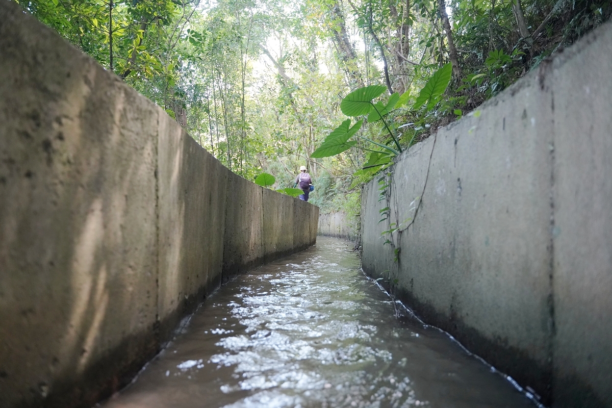 不得不說百年南埔圳的水還滿清涼的,雖然當天天氣還滿炙熱的,走在水圳裡感覺很涼爽