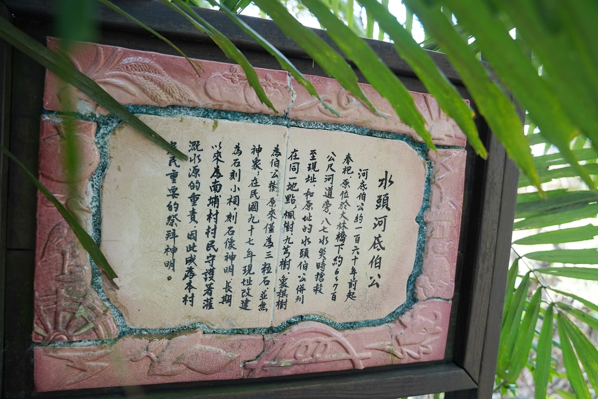 在水頭河底伯公裡可以看到兩位伯公併列,這可不是土地公、土地婆,河底伯公原位於大林橋下約6~700公尺河道旁,於八七水災時搶救至現址,與原址的水頭伯公併列