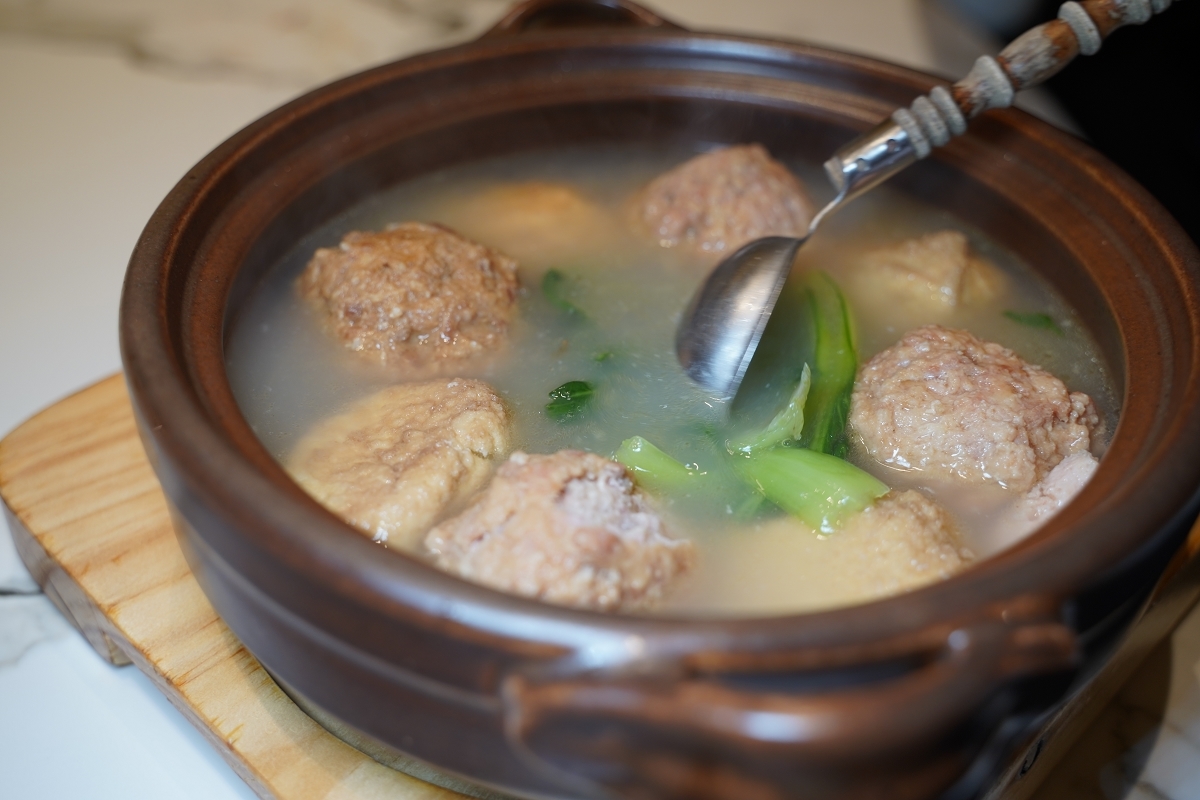 坨子燉豆腐圓其實就是我們常吃的獅子頭,只不過是做成湯品,吃起來會有肉的鮮甜味,湯汁相當飽滿