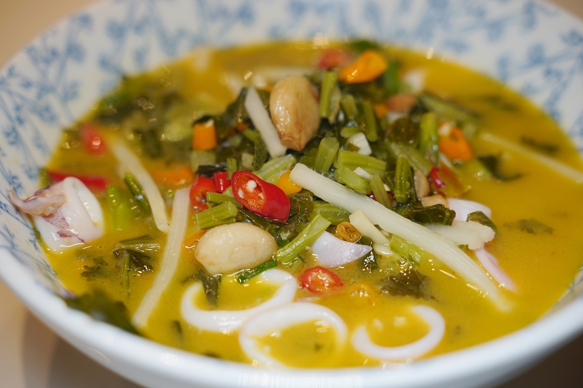 這道雪菜春筍燴小管可以吃到金陵菜的季節感,高湯味道很清甜