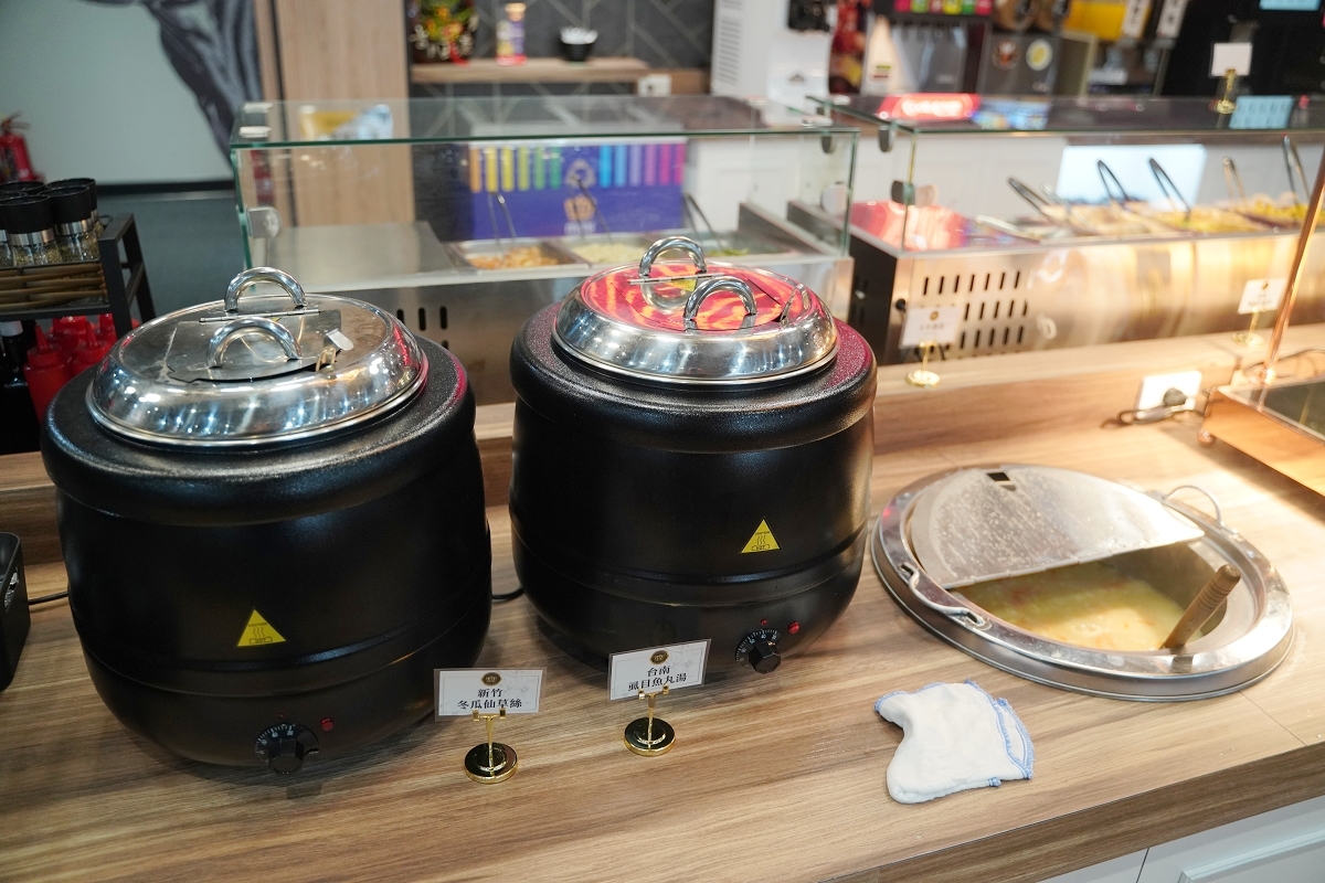 玉米濃湯、台南虱目魚丸湯、新竹冬瓜仙草絲自助區