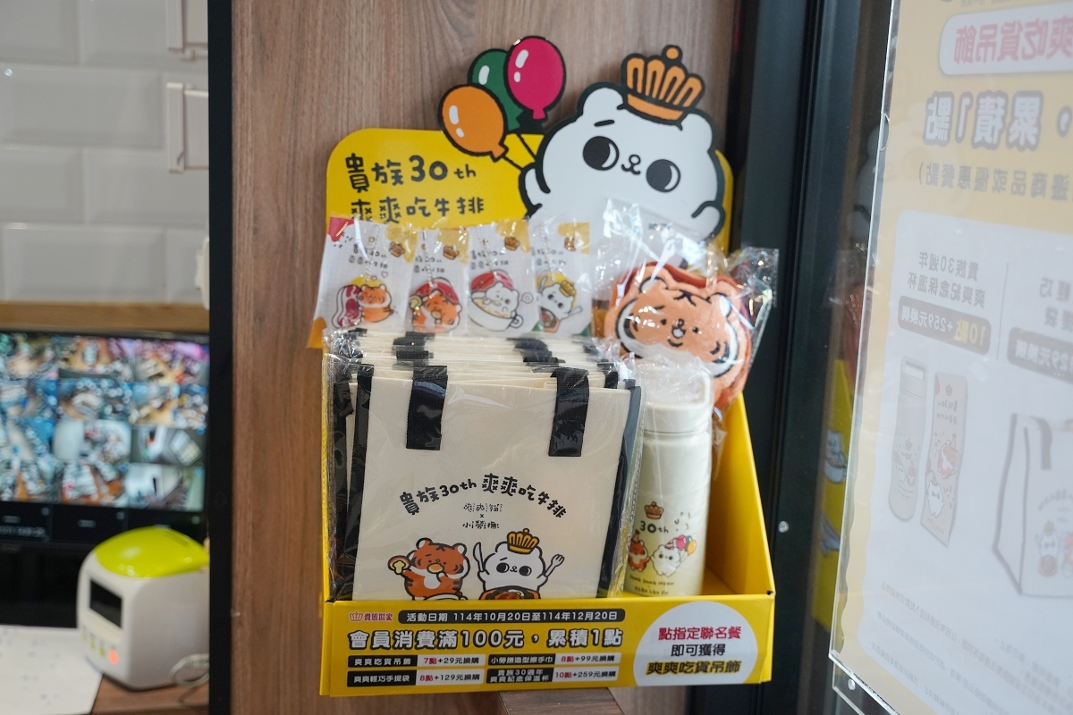 貴族30週年爽爽吃牛排限定聯名開跑,加入貴族世家會員,消費滿100元可集1點,集滿點數就能把可愛聯名周邊帶回家