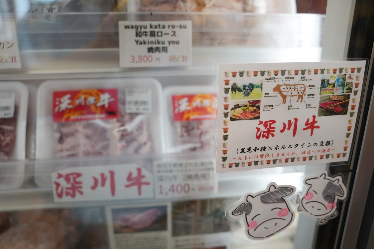 在這裡買得到「深川牛」,是黑毛和種與ホルスタインHolstein乳牛交配而成