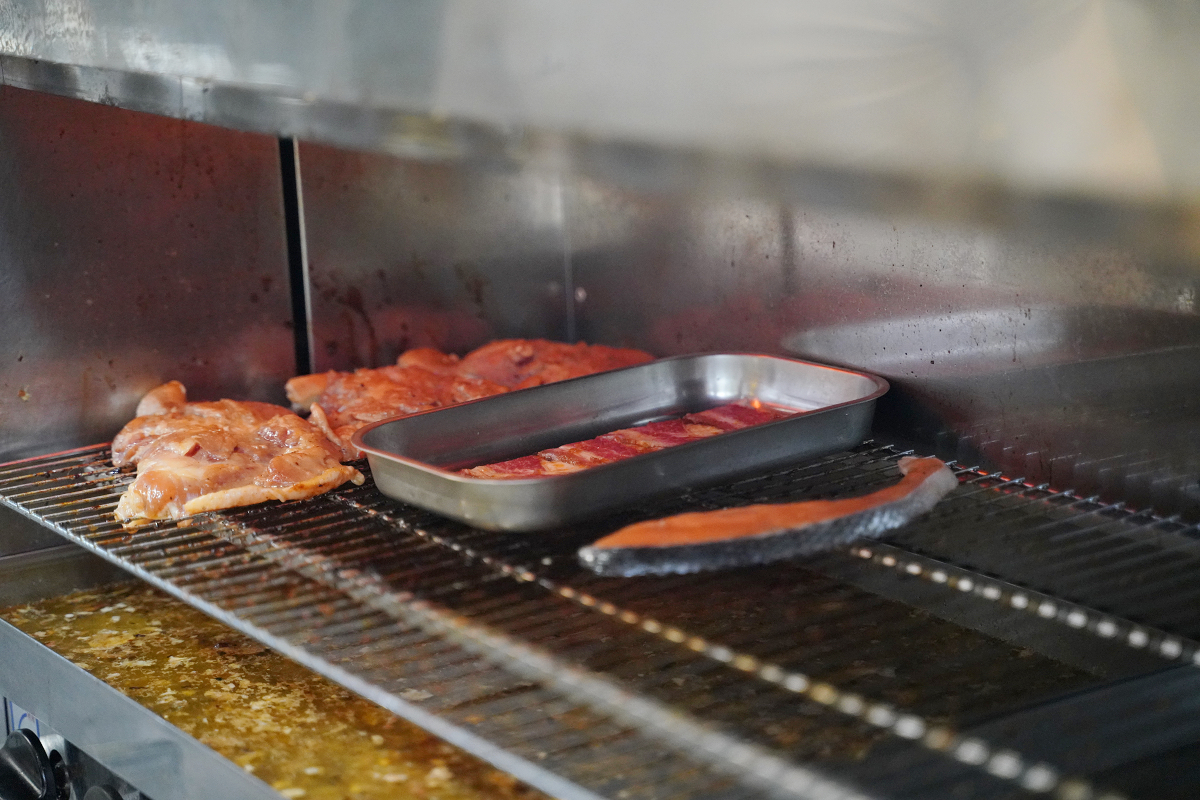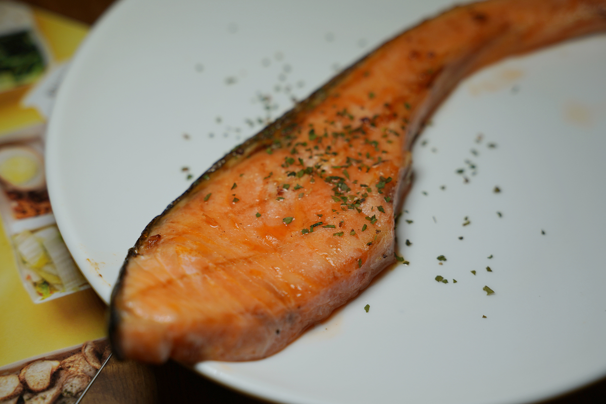 烤食煮盒的主菜都是可以單點的,如果有帶小朋友來,多點一份主菜一起吃是一種很不錯的搭配,而且他們家的薄鹽烤鮭魚真的很好吃,來自北海道的鮭魚油脂豐富,烤好後吃起來口感相當軟嫩又多汁,北海道的鮭魚真的好好吃