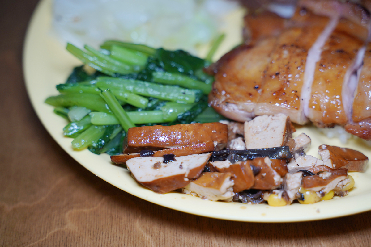 烤食煮盒的配菜吃得到當季蔬菜和滷豆腐,吃完沒負擔