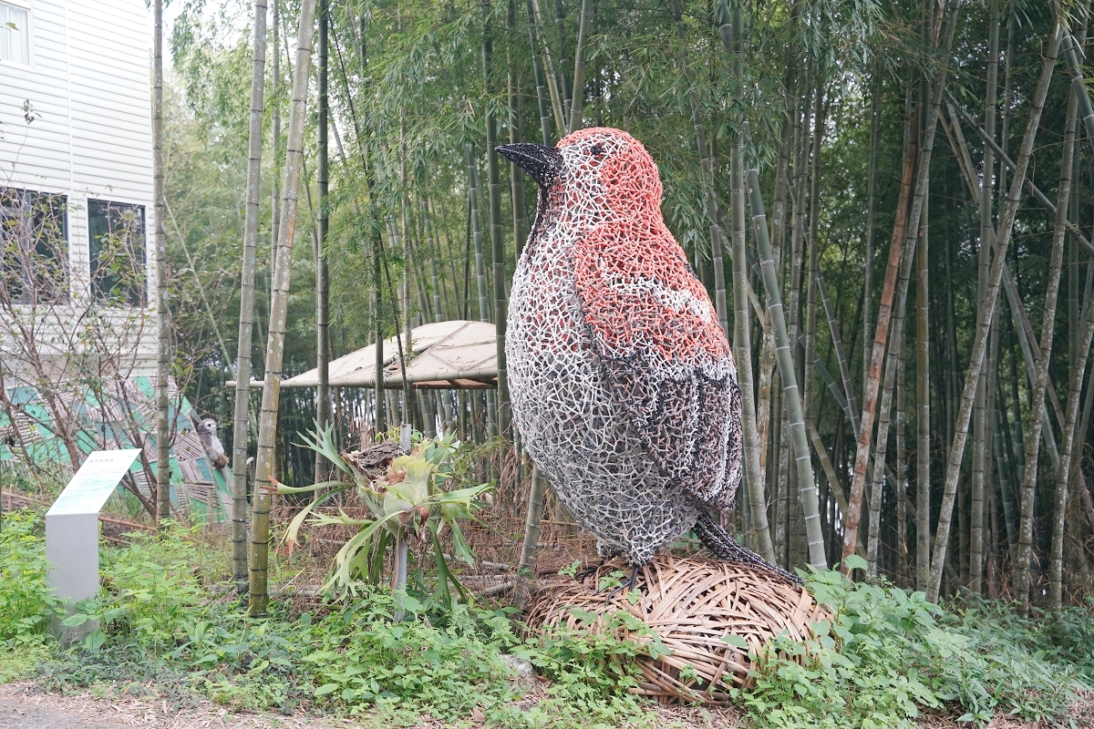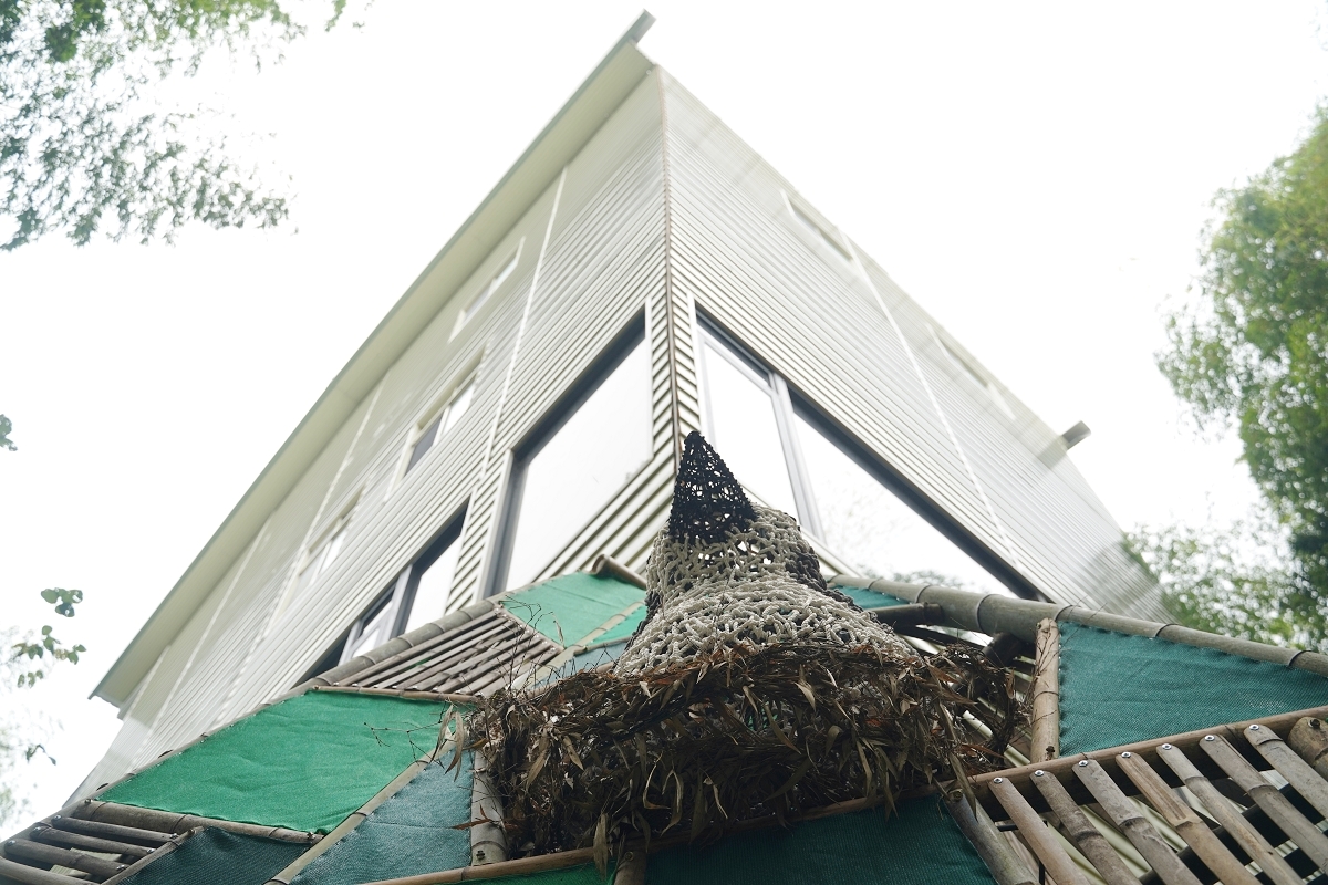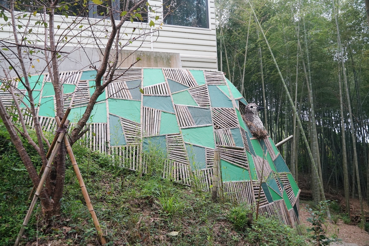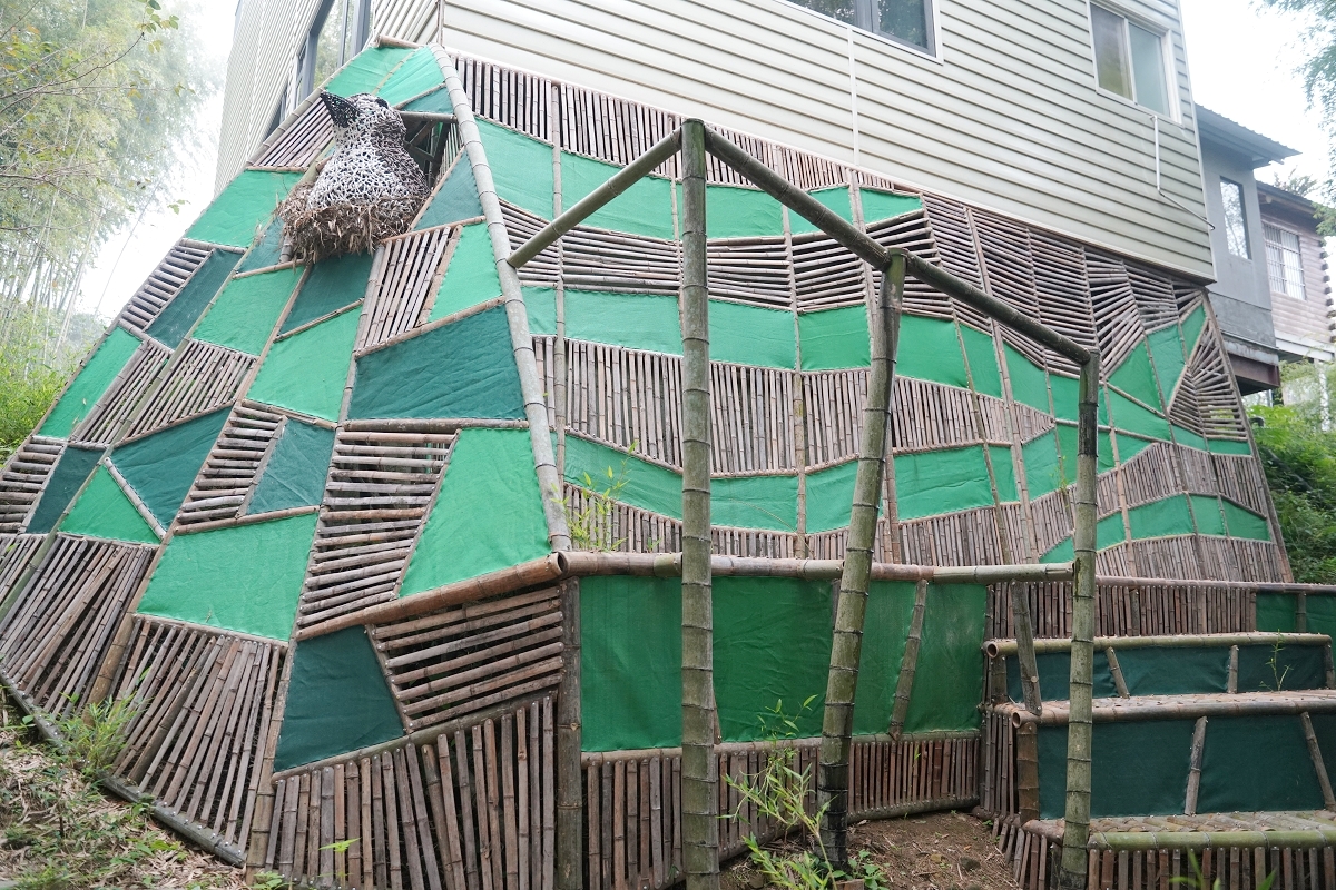 竹平台設計場域,平台上還有一隻竹山麻雀在這裡築巢