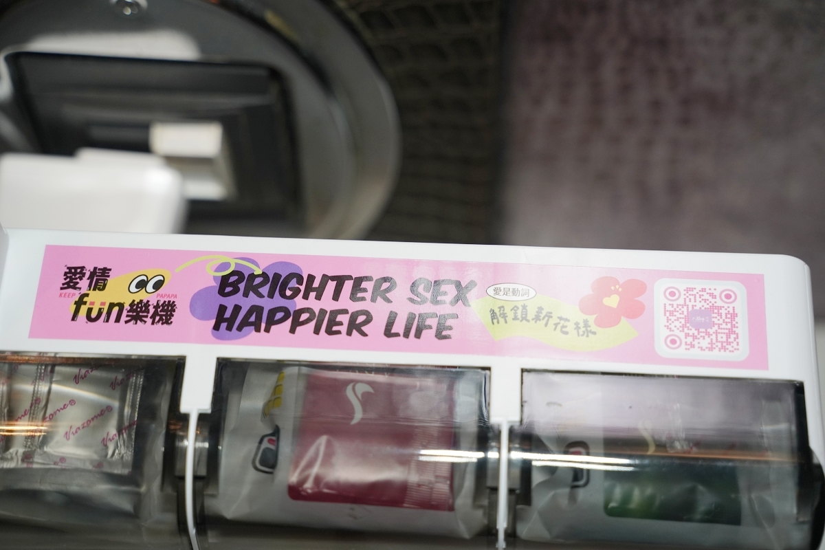 愛情FUN樂機真的很迷你,它就像一台在房間內的小機器,而且它沒有產品展示燈,就算是帶小朋友入住也看不出來裡面是展示什麼產品,要不是我們有打燈拍照,不然真的是看不到裡面的產品包裝