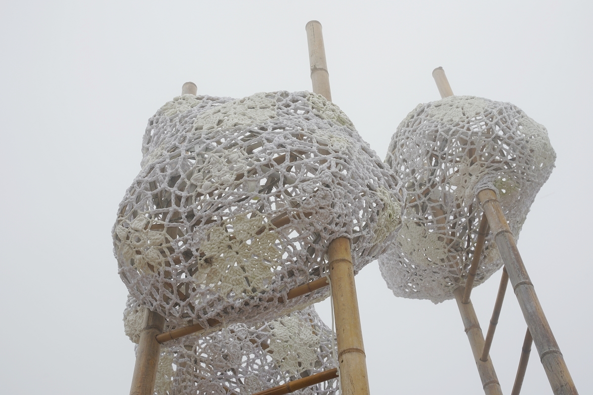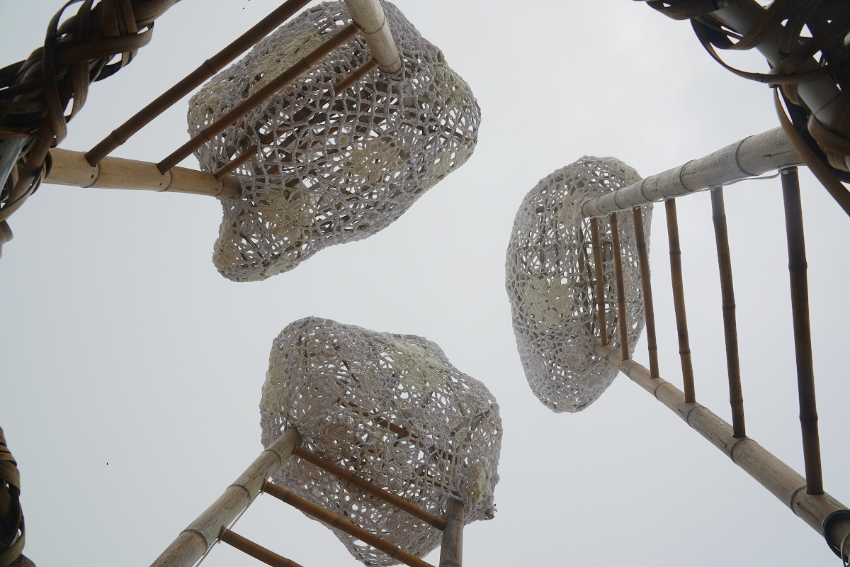 「天上人間」將傳統竹梯融合雲朵意象,就跟太平天梯一樣走在雲層裡的感覺