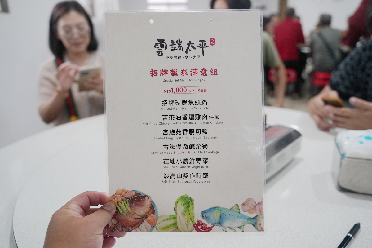 這間位於嘉義梅山太平雲梯旁的「雲端。太平82」,是一間相當推薦的嘉義梅山太平美食餐廳好選擇,雲端。太平82有提供團體合菜與平價單點,招牌是砂鍋魚頭以及自製香腸,當天我們點的是1800元的5~7人套餐,等於每人才200多元就可以吃飽飽,除了招牌砂鍋魚頭鍋外,苦茶油香煸雞肉和杏鮑菇香腸切盤也好吃到不行,各位朋友如果有機會到太平老街或太平雲梯的話,推薦可以來這裡用餐吃飯唷!!