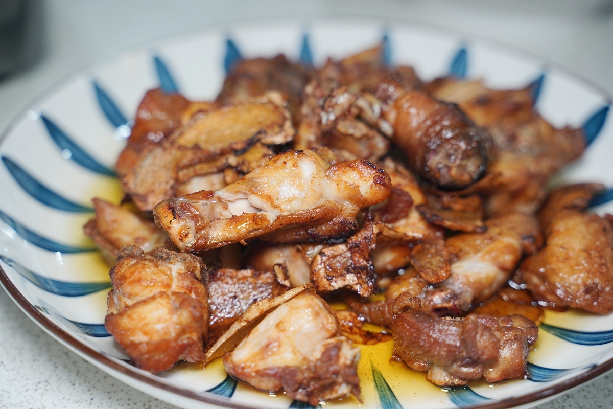 苦茶油是在地農特產之一,在老街上就買得到現榨的苦茶油,用苦茶油香煸的雞肉真的特別香,連薑片都煸到非常美味