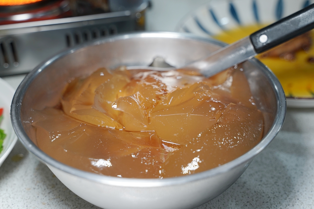 飯後甜點是一整盆的野生愛玉,口感超滑嫩的,味道酸甜,好吃大推