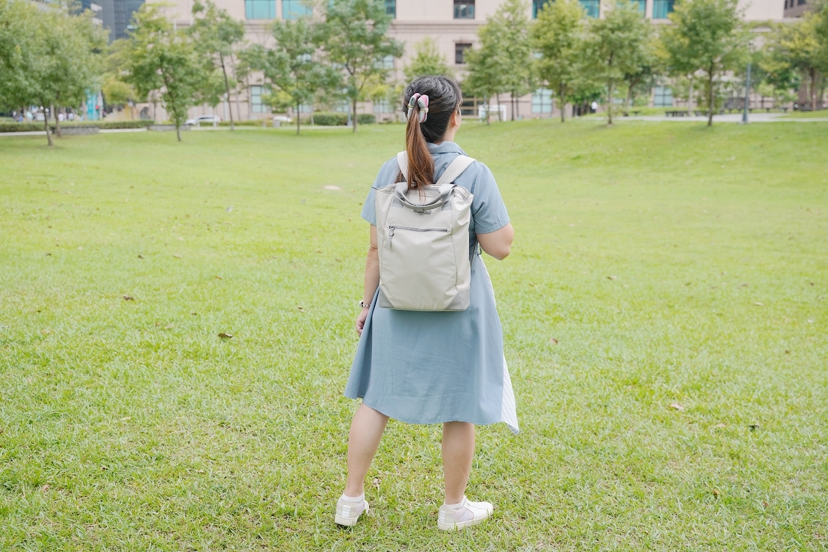 這款 Targus Avila 15-16 吋手提後背兩用筆電包背起來是比較扁的,不會像一般後背包鼓鼓的,搭配什麼衣服都滿好看的