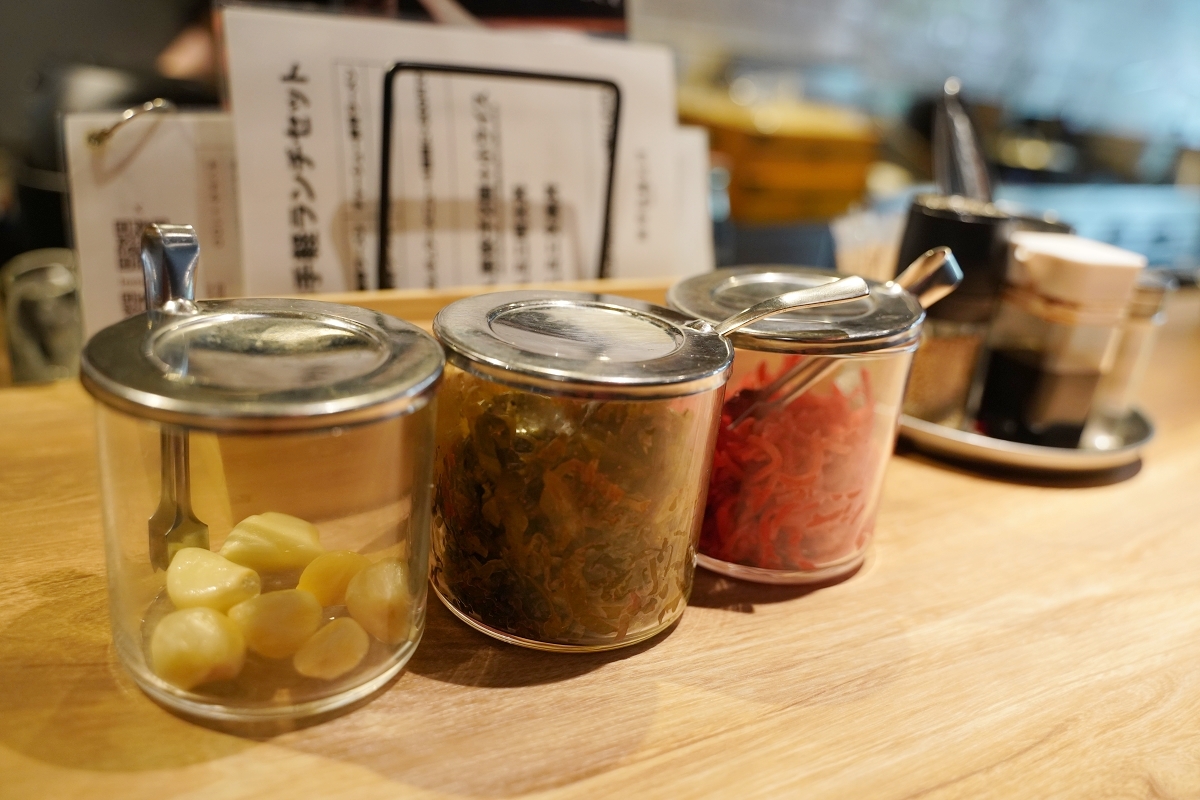桌上會提供大蒜、榨菜與薑片可以免費使用