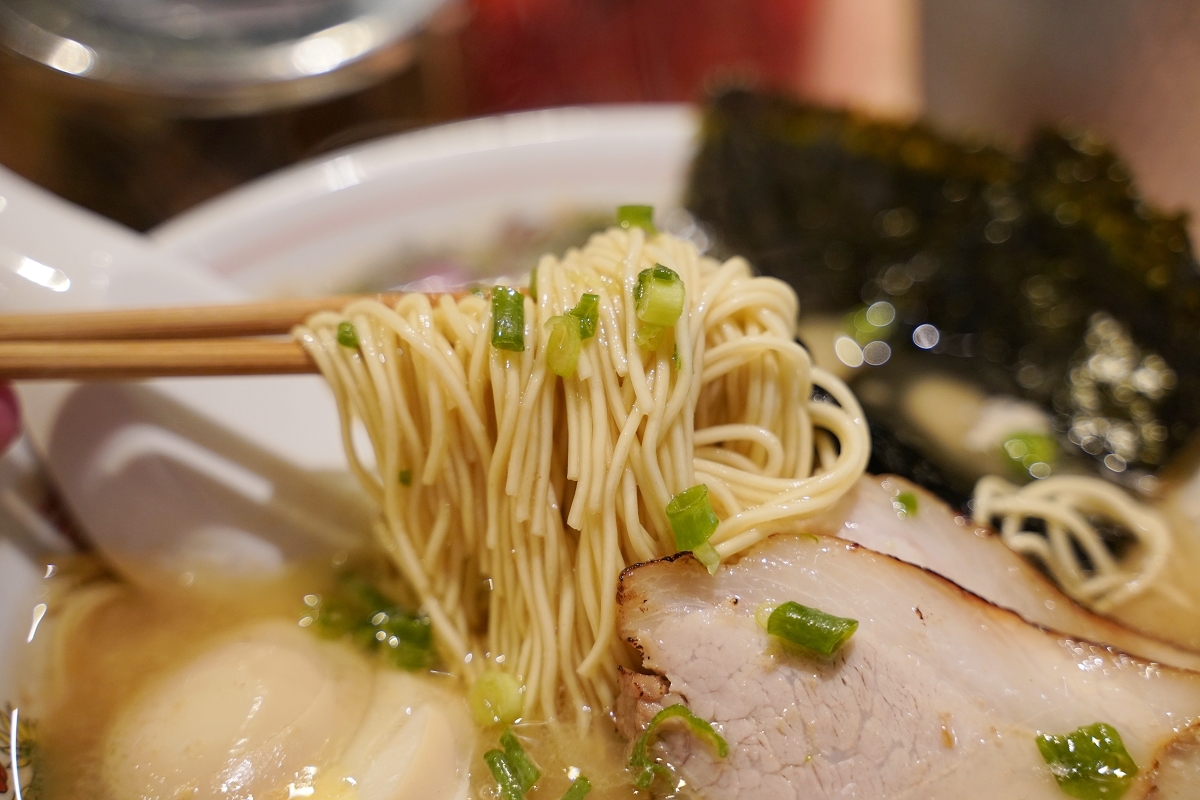 豚骨拉麵大河的麵條是福岡直送的特製豚骨拉麵專用麵條,是專為濃厚豚骨湯頭而設計的,不得不說真的是很好吃,每一口都可以完美巴附濃郁湯汁也有不錯的咀嚼感,愛吃拉麵的一定要來試試