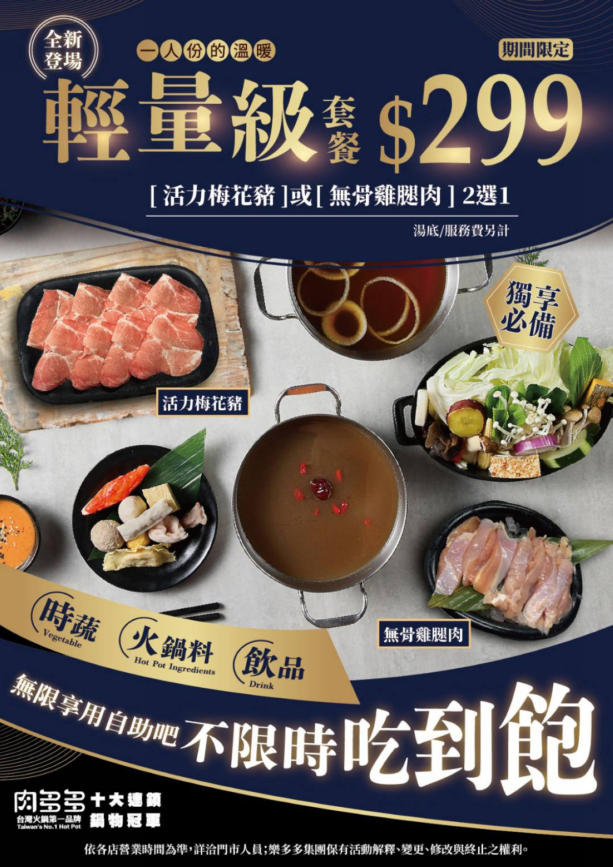 現在來肉多多推薦可以試試這期間限定的299輕量級套餐,每人299元即享無限享用自助吧,這CP值真的超高