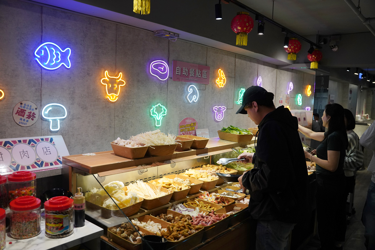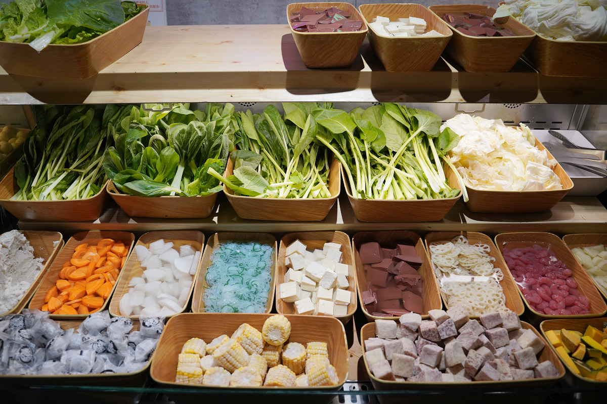 來肉多多最吸引人的還是店內的蔬食自助吧,這裡超過40種蔬食自助吧可以無限吃,不管是各種火鍋料、滑類、蔬菜與快煮麵都是無限享用