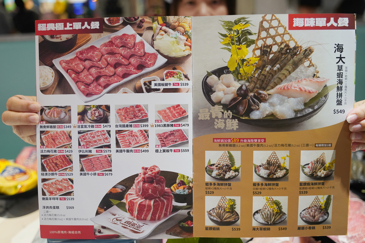就算一個人來肉多多火鍋也可以吃得好也吃得巧,經典極上單人餐和海味單人餐都很多選擇