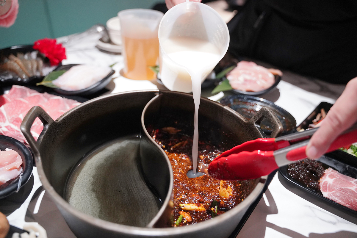 這次我們點了「爆炒招牌石頭湯」以及「爆炒川府麻辣湯」兩種都是需要桌邊爆炒的,爆紅的石頭湯竟然在肉多多讓我吃到,難怪已經開了40家直營店