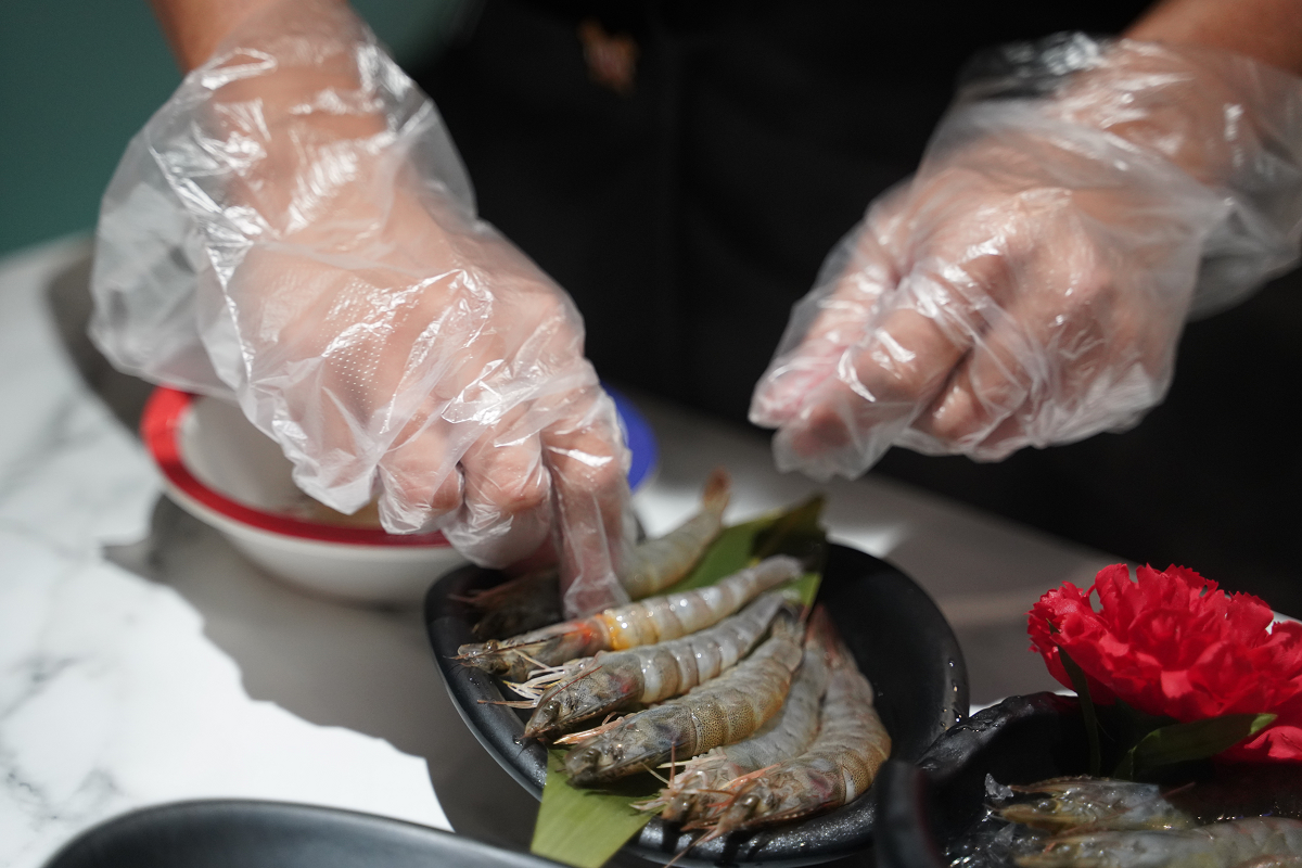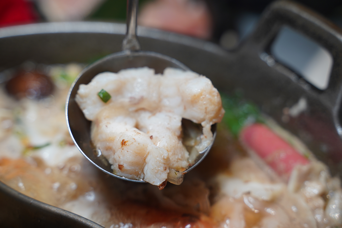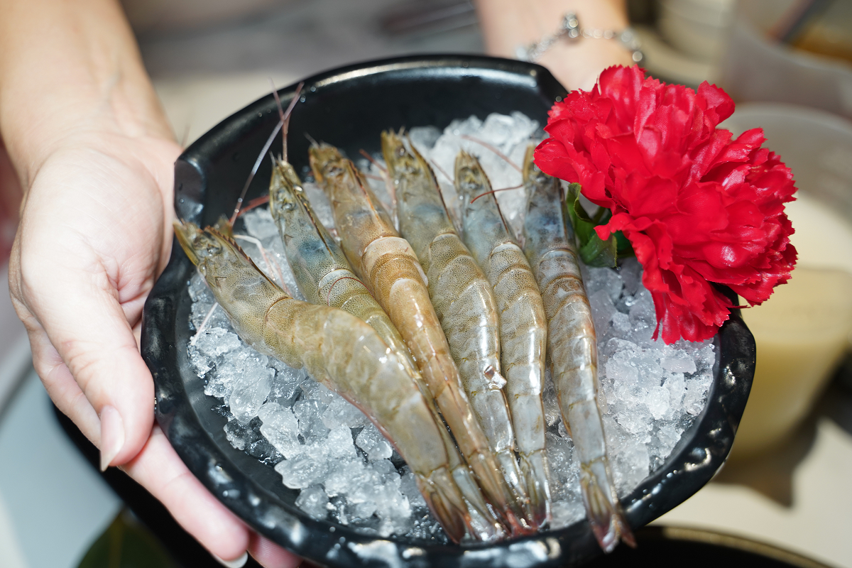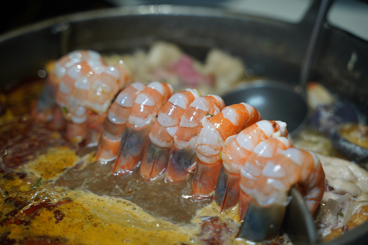 來肉多多火鍋吃蝦還有服務人員在桌邊服務協助剝蝦也太貼心