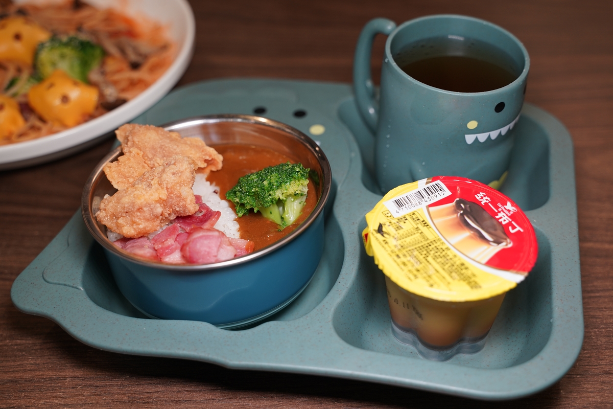 小朋友咖哩餐是用小朋友餐盤來呈現還滿可愛的,如果能選男生女生款就更貼心了
