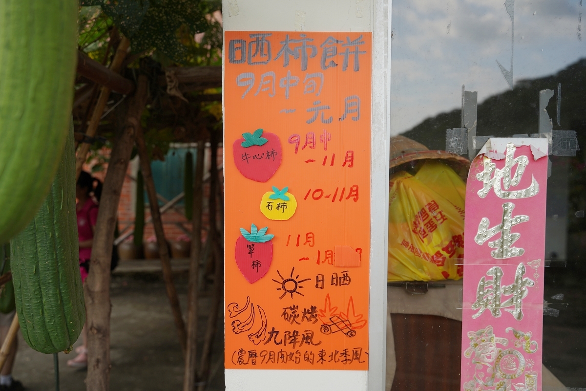 每年9月到隔年元月就是曬柿餅的季節,9月~11月是牛心柿、10~11月是石柿、11月到隔年1月則是筆柿