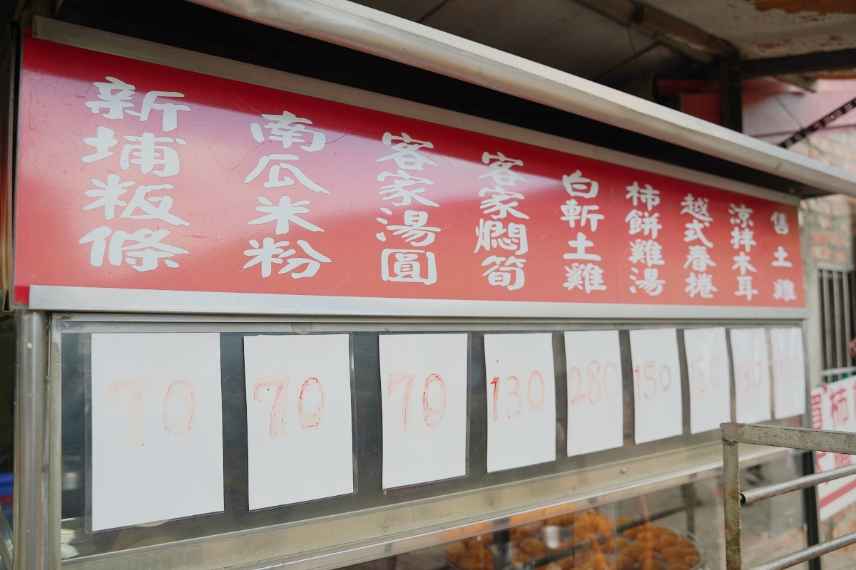 菜色不算多,吃得到新埔粄條、南瓜米粉、客家湯圓、客家燜筍、白斬土雞、柿餅雞湯、越式春捲以及涼拌木耳,如果是團體想要訂桌菜料理的話,也可以事先預約