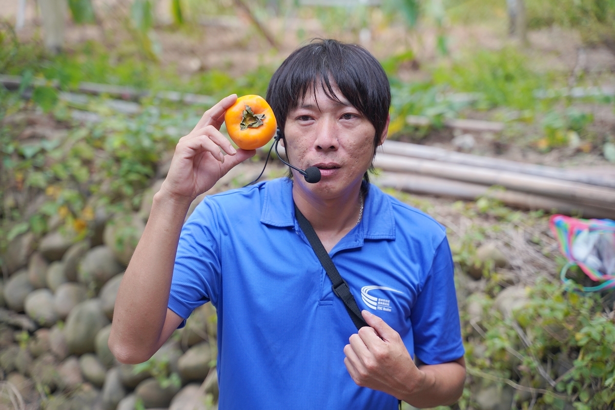 吃飽飯後後,我們跟著味衛佳第四代、新埔旱坑社區總幹事 呂易承的來到果園聽導覽,後山果園裡有兩百多棵柿樹,每逢秋天柿子成熟時,就會看到滿山柿果紅成一片的美景