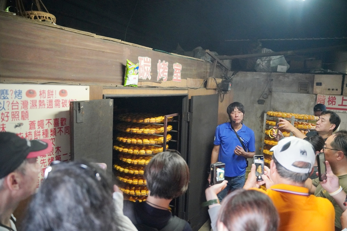 味衛佳柿餅教育農園製作柿餅的流程非常繁瑣,從選果清洗、去萼削皮、炭烤日曬、捻壓整形一直到烘焙殺菌,才能成為我們最後吃到的柿餅