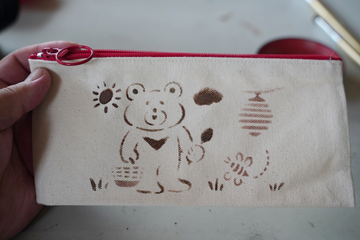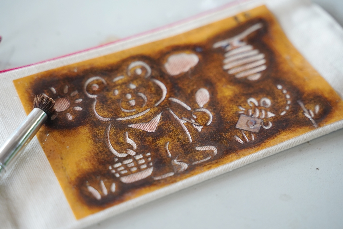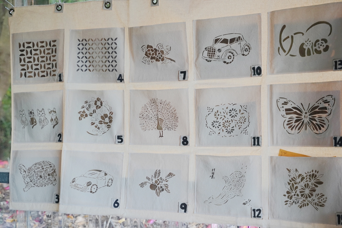 我們只要用筆刷沾滿染液刷在模版上就行了,就連小朋友都能體驗