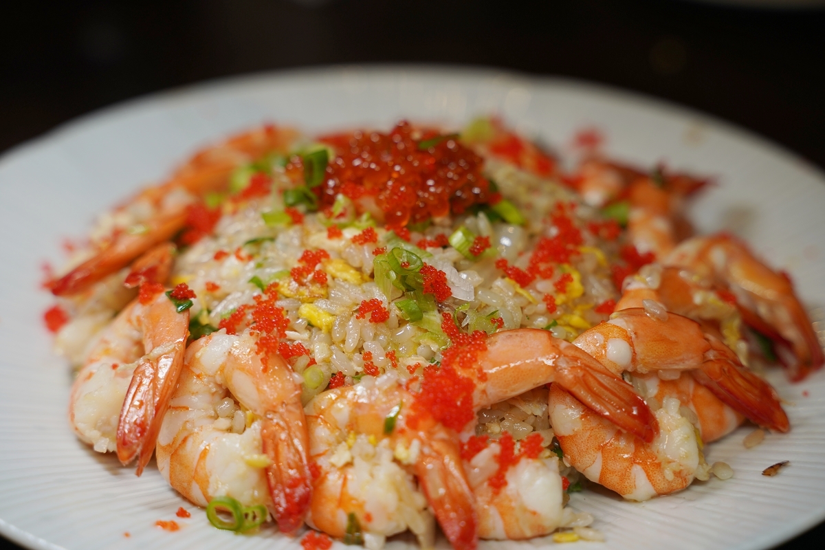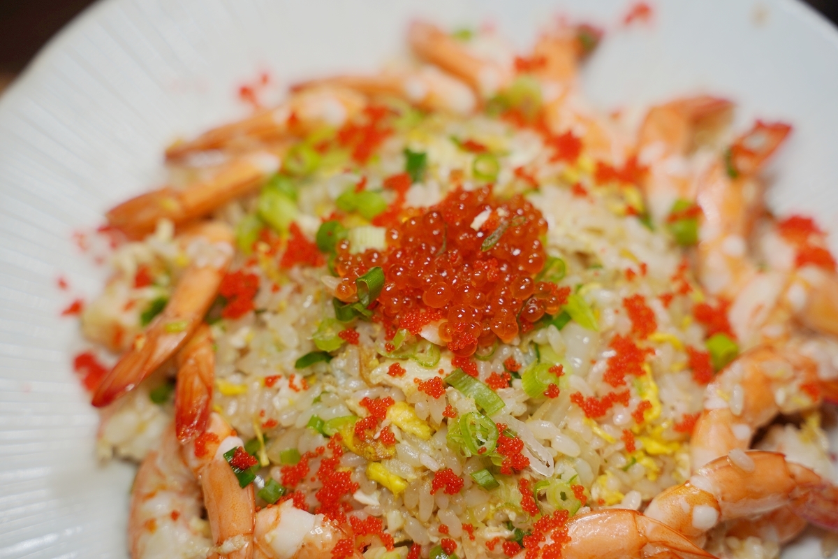 大火熱炒的美味炒飯,每一口都吃得到鮮蝦、鮭魚卵和蝦卵,香氣四溢,愛吃炒飯的朋友一定要點