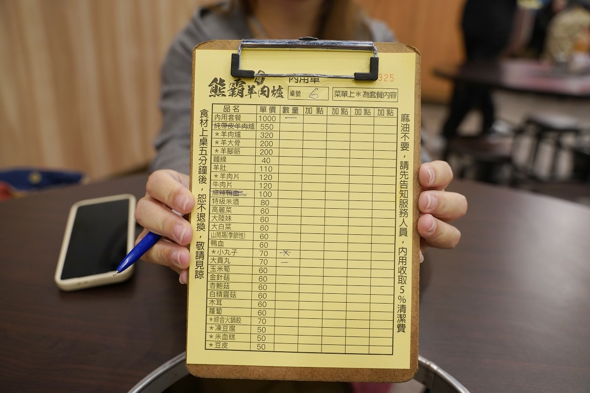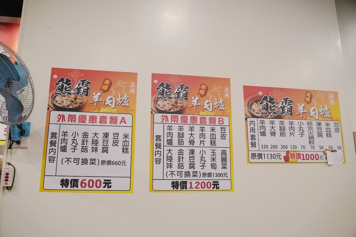 熊霸羊肉爐菜單價目表