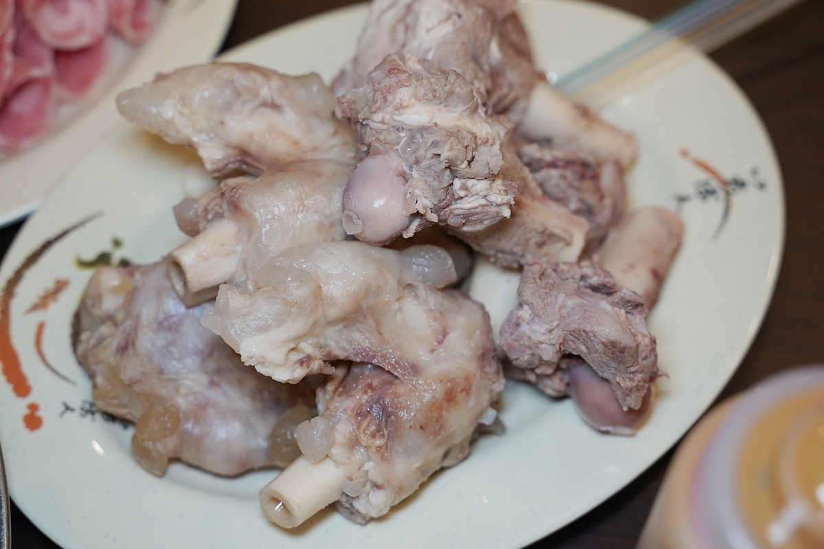 羊大骨和羊腳筋放在鍋裡煮一下就可以撈起享用了,羊腳筋的膠質非常豐富,吃在嘴裡嘴唇都會黏黏的,骨邊肉真的超嫩的