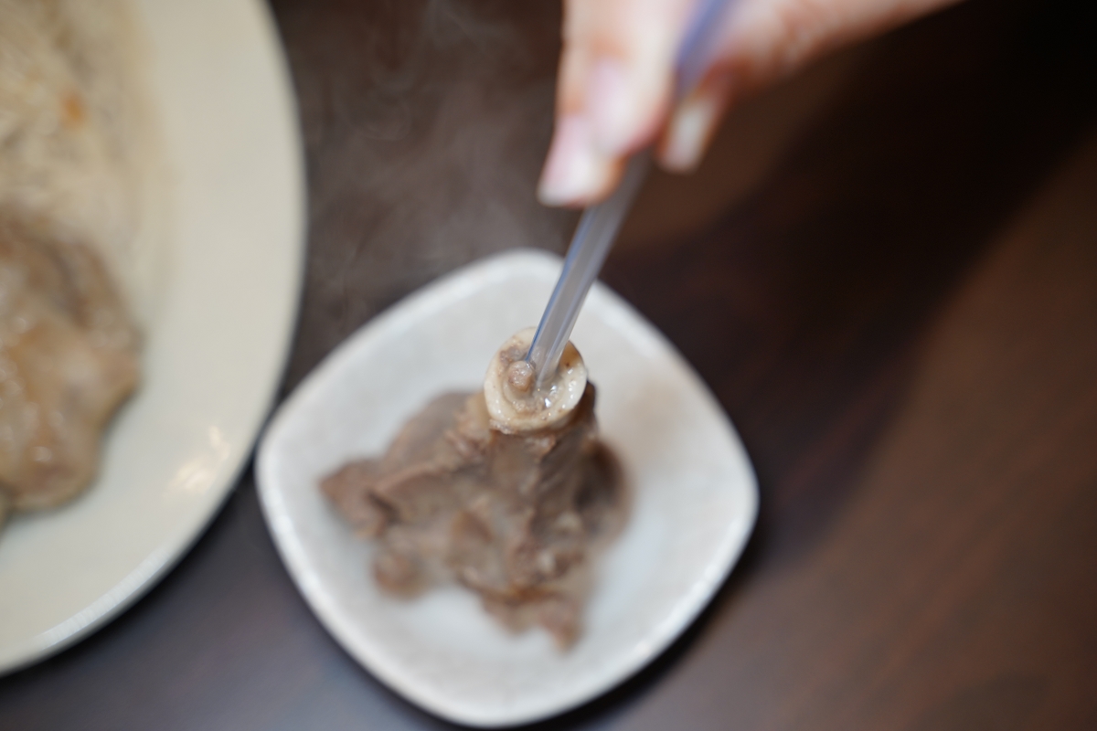 羊大骨會附吸管讓我們方便吸吮骨髓,入口即化的油脂口感,味道超濃厚的