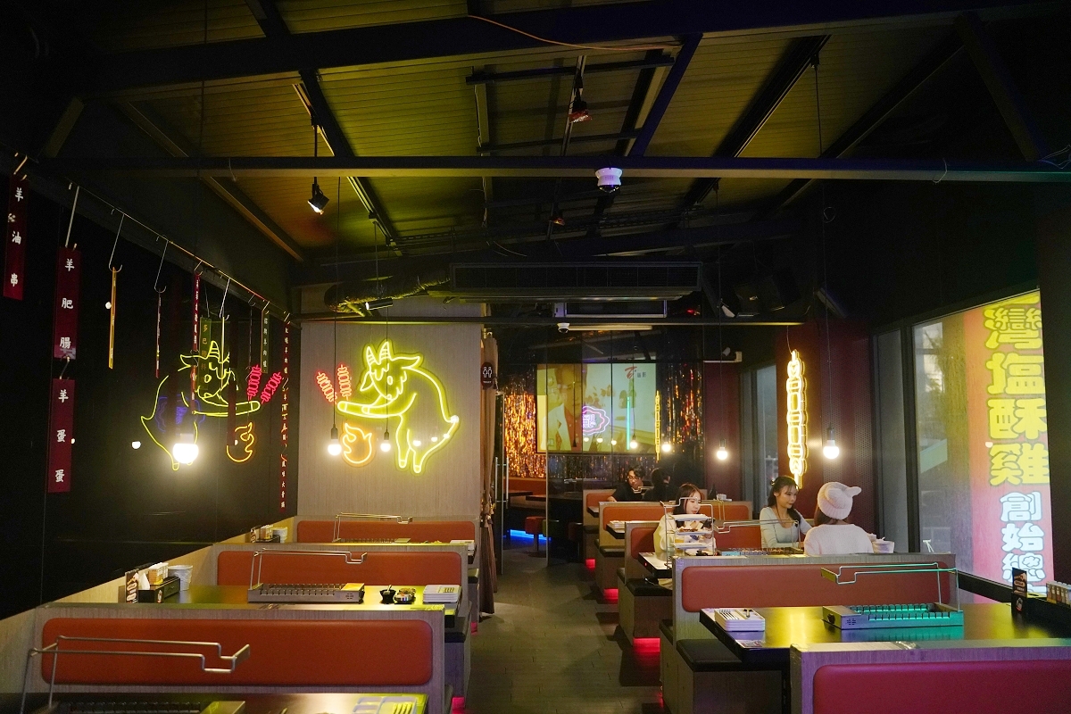 羊騷殿店內使用了大量的霓虹燈裝飾,牆上還有超可愛的羊咩咩烤肉的燈飾,店內最後方有包廂,包廂內會播放運動賽事的直播,喜歡看球賽的朋友,可以約三五好友一起來羊騷殿看比賽