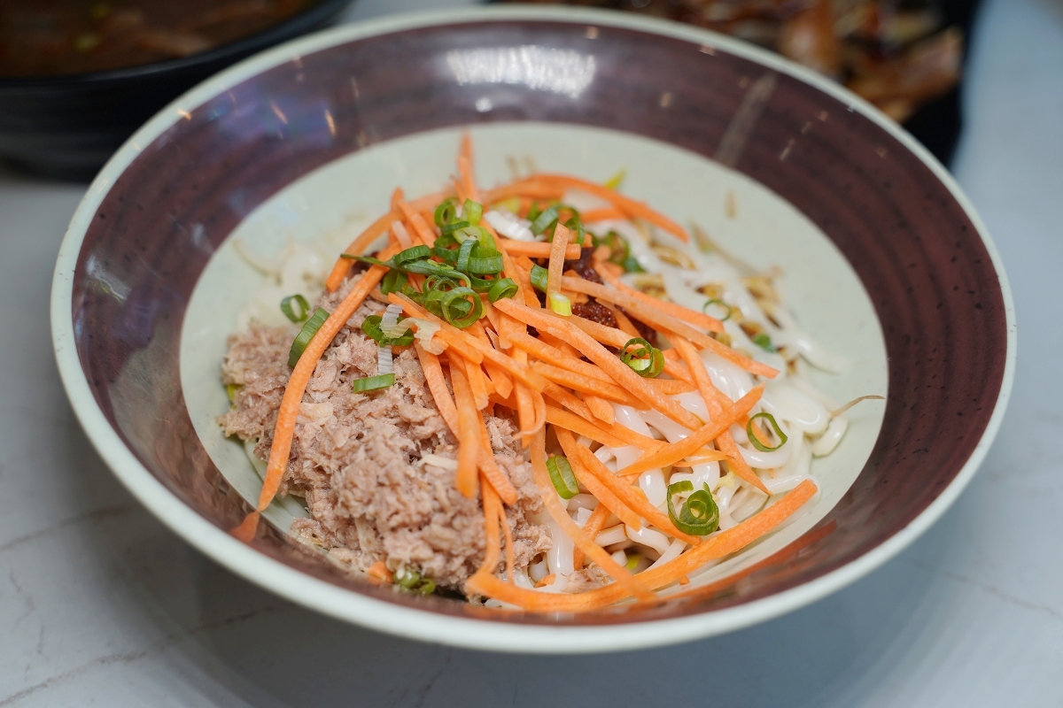 一劉乾麵是店裡的招牌,麵條是口感Q彈的拉麵,特別的是還加了美乃滋和水煮鮪魚,拌一拌後就可以開吃了,沒想到味道還滿不錯的,帶點辣味很開胃
