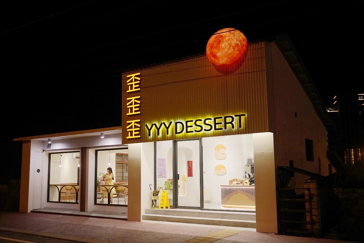 歪歪歪甜點太魯閣新城店的位置就在花蓮新城鄉的台九線上,鄰近煙波花蓮太魯閣與曼波海灘,白天來是一棟純白建築物,到了晚上打燈後才知道原來屋頂上是一顆鹹蛋黃